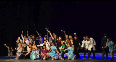 Sin previo aviso, el telón se cierra. Las miradas se cruzan, nadie sabe que sucede. Ahora no existe nada y en medio de la nada las luces se reavivan, los actores corren entrelazados con sus manos para dar las gracias. Unos y otros aproximadamente 100 actores en el escenario dando las gracias por una novena noche de combate montada tan sólo unas horas atrás. ¡Vaya que la improvisación hace la magia!
